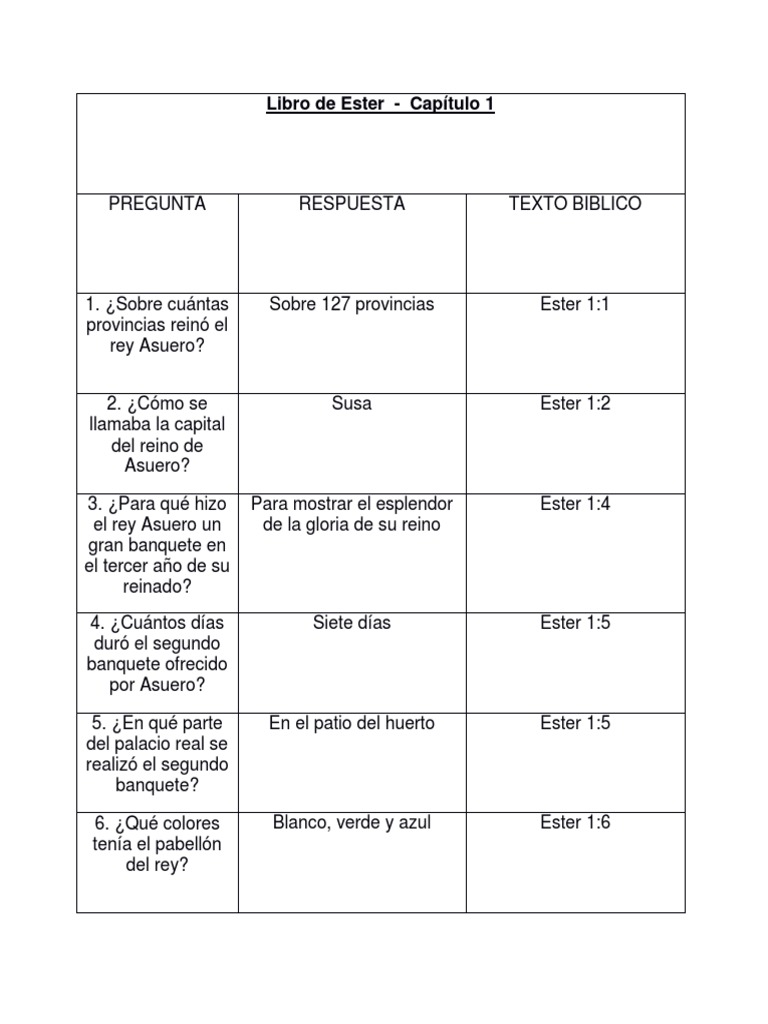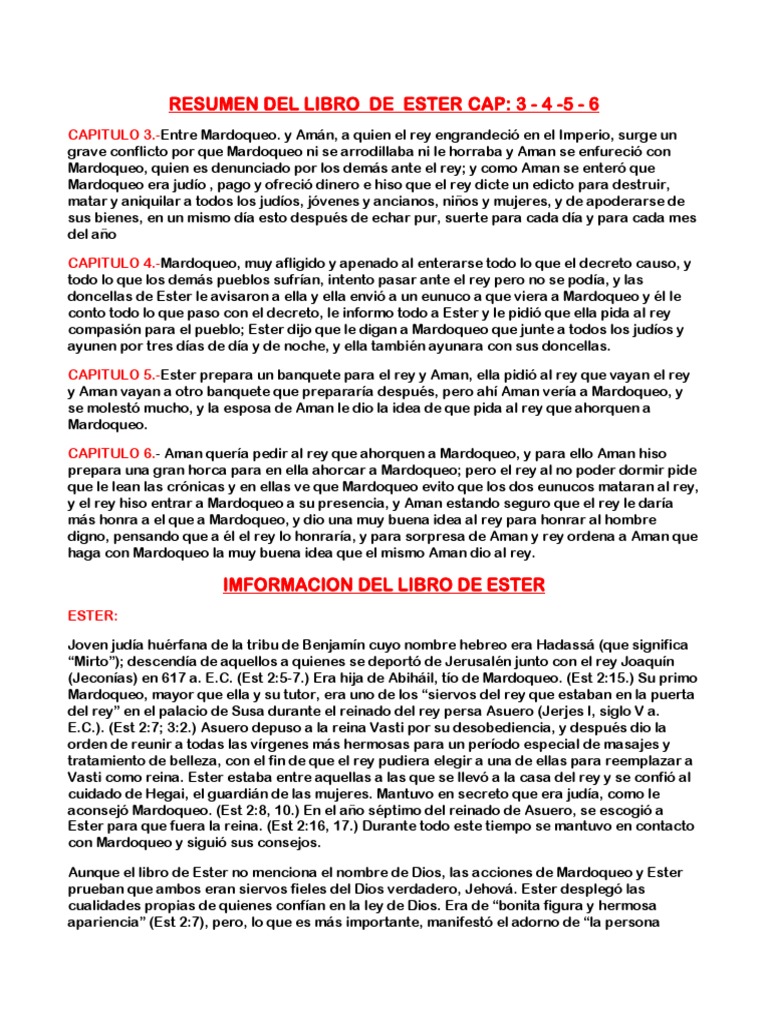 Por lo tanto es desterrada y comienza la bsqueda de una nueva reina. Resumen del Libro de Ester I. El da designado todos los judos del imperio que se extiende desde la India hasta Etiopa sern aniquilados.